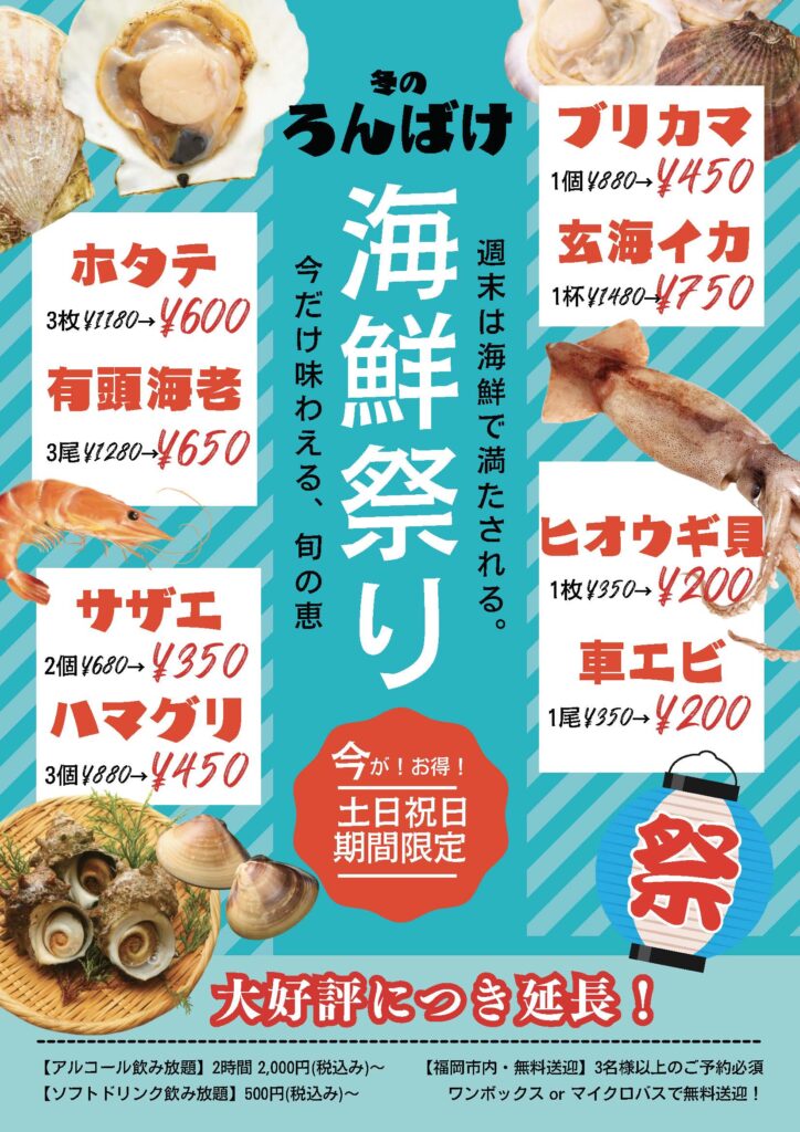 ホタテ・サザエ・ハマグリ・ブリカマなど、人気の海鮮を特別価格でご提供。
