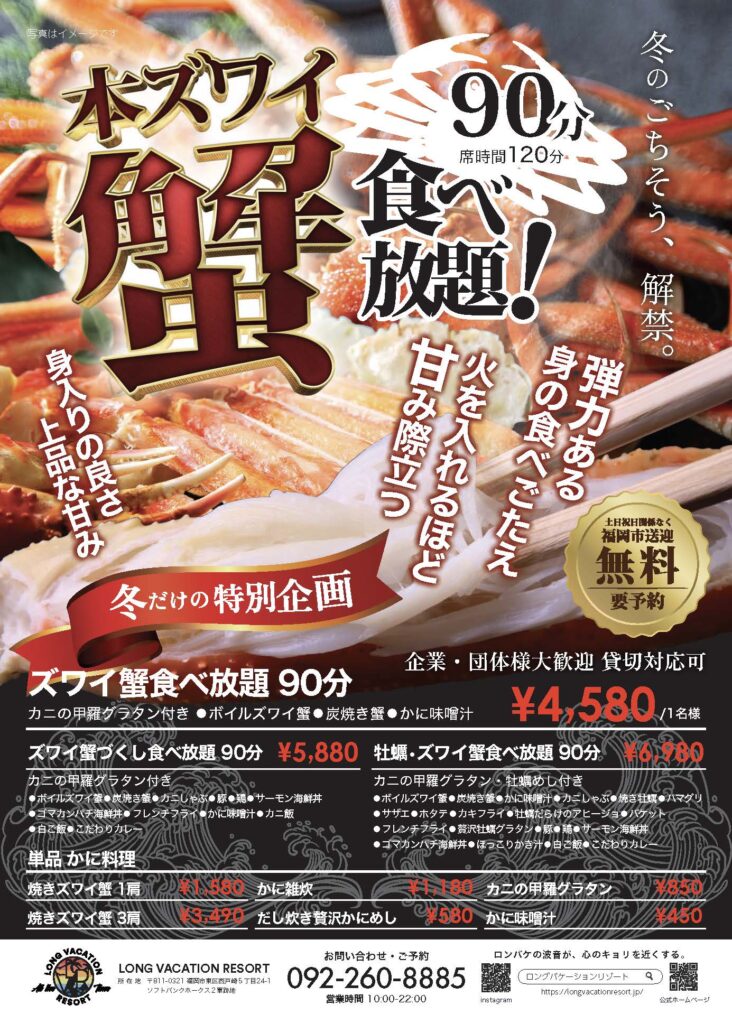・牡蠣・ズワイ蟹食べ放題(甲羅グラタン付き/牡蠣めし付き)6,980円